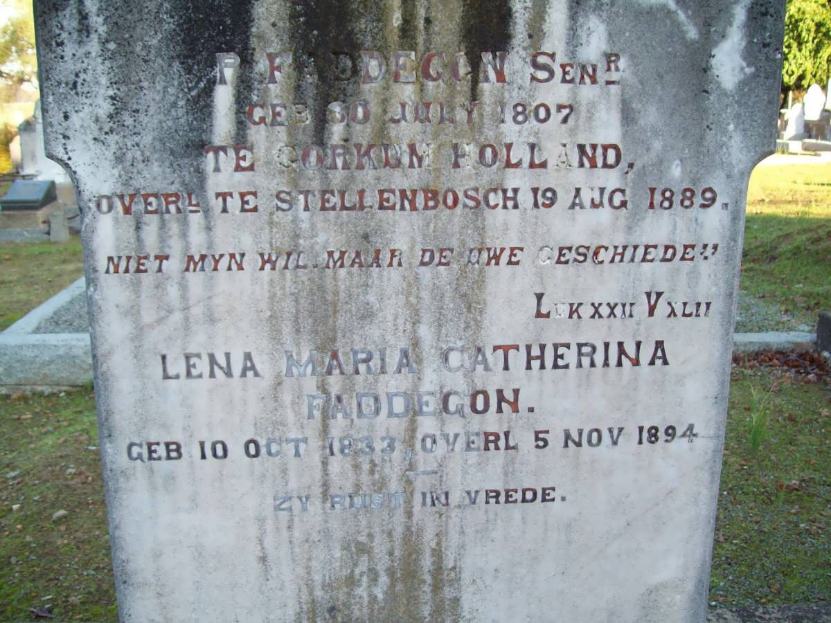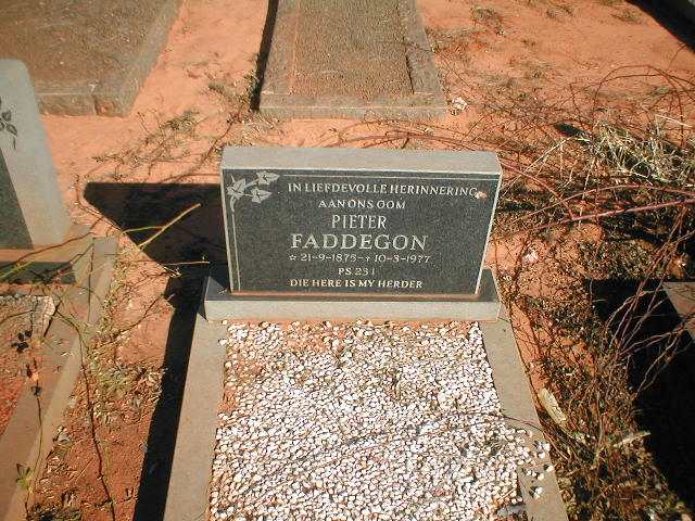 Nakomelingen in manlijke lijn zijn er in Zuid-Afrika niet meer. Het blijkt in Zuid-Afrika echter al langer mogelijk, de naam van een voorouder uit de vrouwelijk lijn aan de naam toe te voegen. Zodoende komt de naam Faddegon ook bij huidige generaties nakomelingen nog steeds voor.