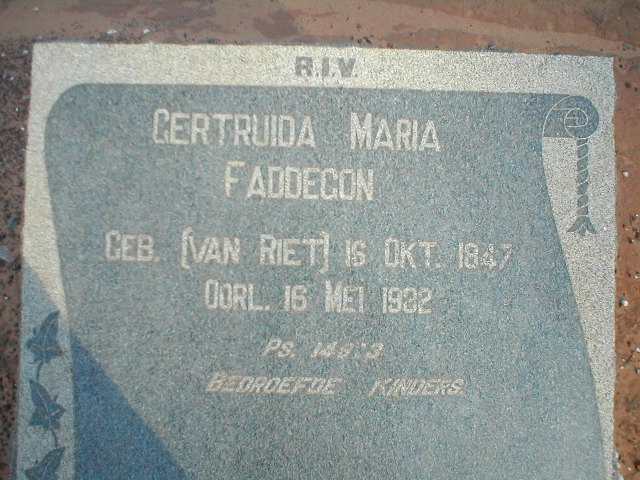 Huwde Antonie Johannes Botes (1885- ). Hun zoon, geboren in 1919, voegde de familienaam Faddegon weer aan zijn naam toe, zodat die via deze tak tot in de huidige generaties weer wordt gebruikt: